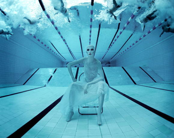 Alinka Echeverria displays symmetry in her underwater series. The lanes of the pool and the swimmers above proove the symmetrical quality of the photo.